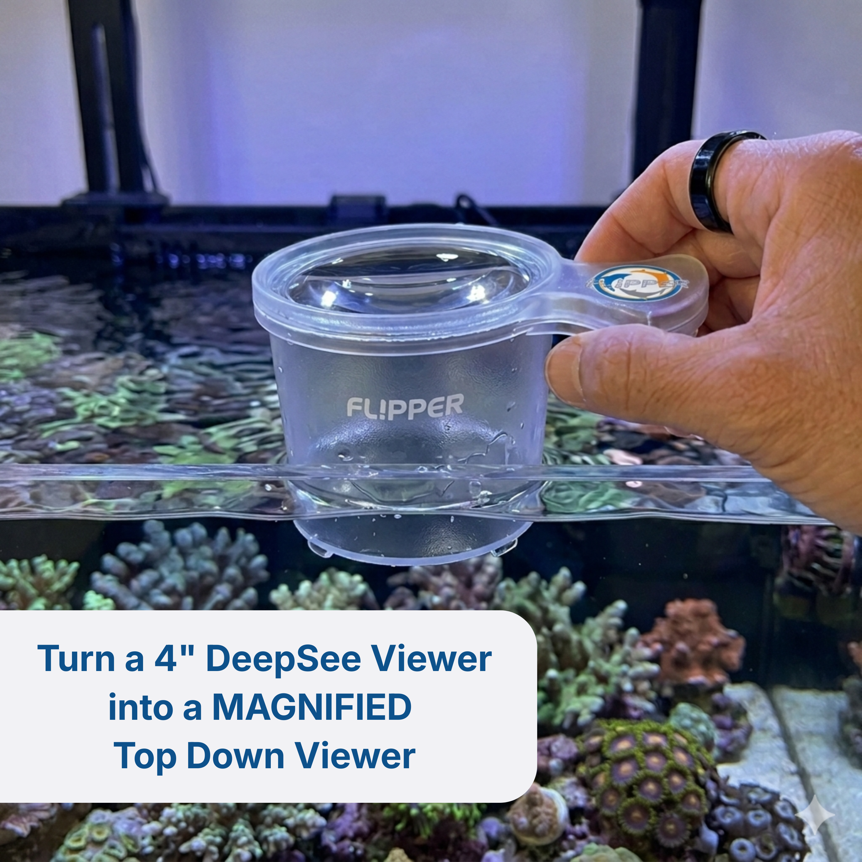CONVERT YOUR MAGNIFIER INTO A TOP-DOWN LENS: Instantly upgrade your 4" Flipper DeepSee Viewer into a premium top-down viewing scope. Just slide the scope onto your existing viewer to experience your reef tank and corals from a whole new, breathtaking angle.